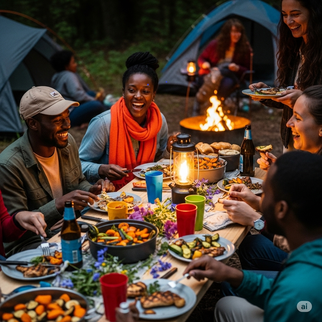 - (준비물 체크리스트) 기본적인 캠핑 장비 외에, 블루투스 스피커, 감성적인 디자인의 랜턴, 따뜻한 블랭킷, 마시멜로 등은