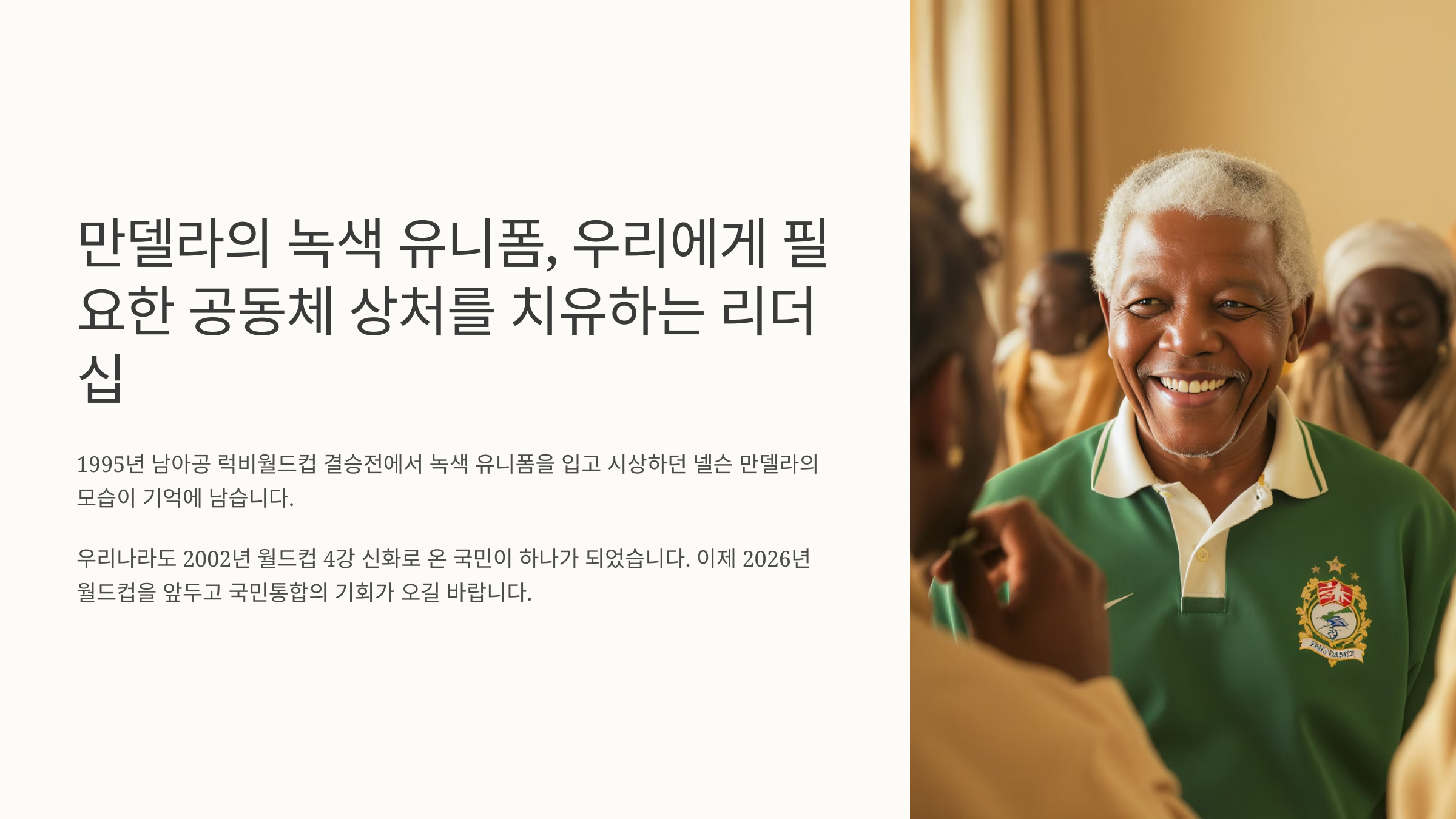공동체의 상처를 치유하는 진정한 리더십의 지도자가 필요한 대한민국