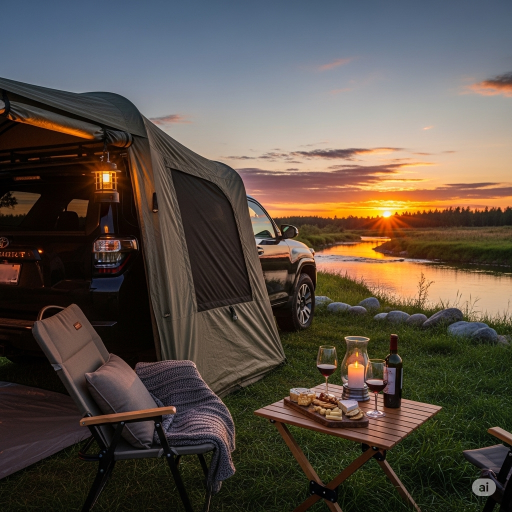 - 도킹 텐트(Docking Tent): 차량의 트렁크나 옆문과 직접 연결(도킹)하여 사용하는 텐트입니다. 차량 내부를 침실로, 텐트 공간을 거실로 활용하여 공간 효율성을 극대화할 수 있는 인기 아이템입니다.