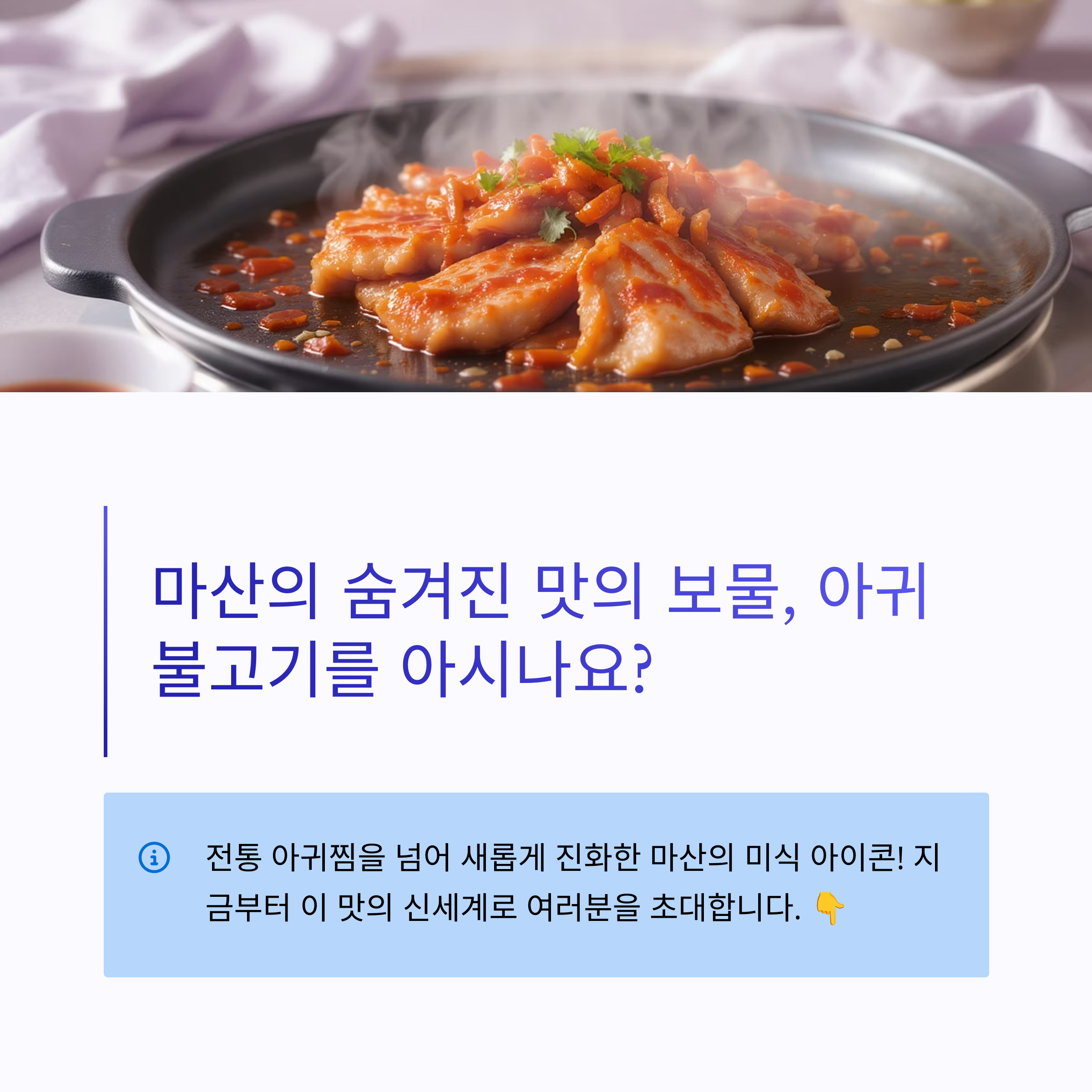 대한민국 근대산업화의 현장이었던 마산항 그 안에 이런 진귀한 음식이 있다는 것을 아는 사람 많지않다 아귀 불고기 맛을 아는 사람은 행복한 사람이다
