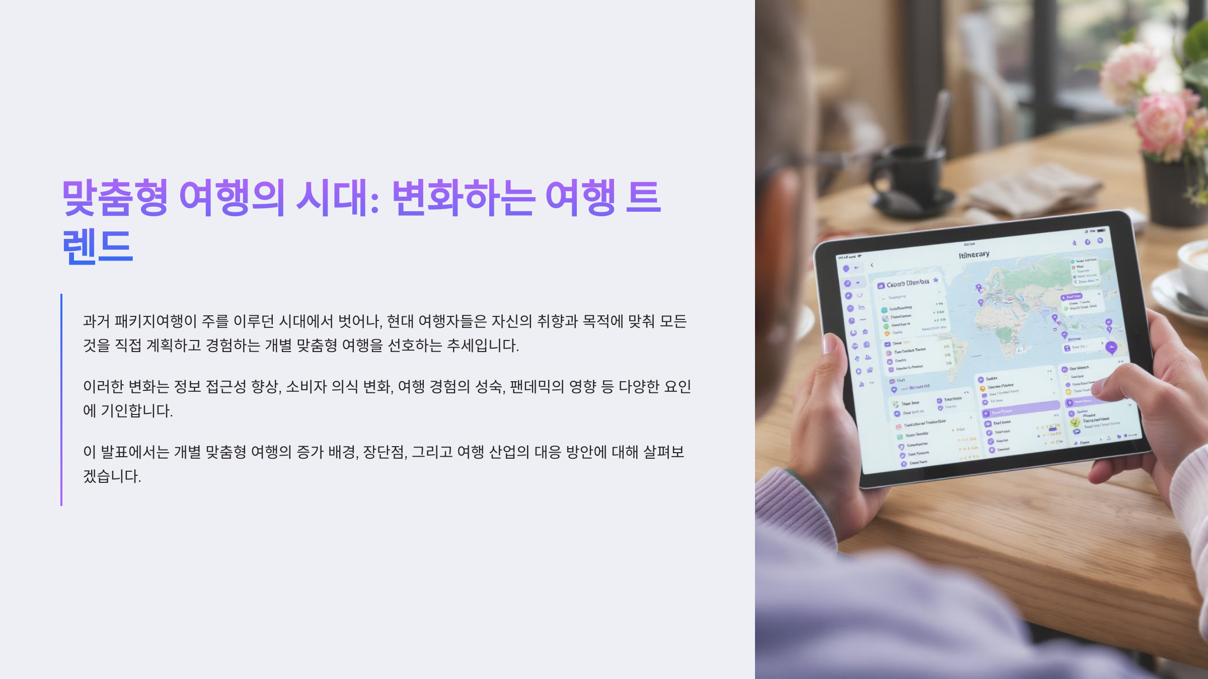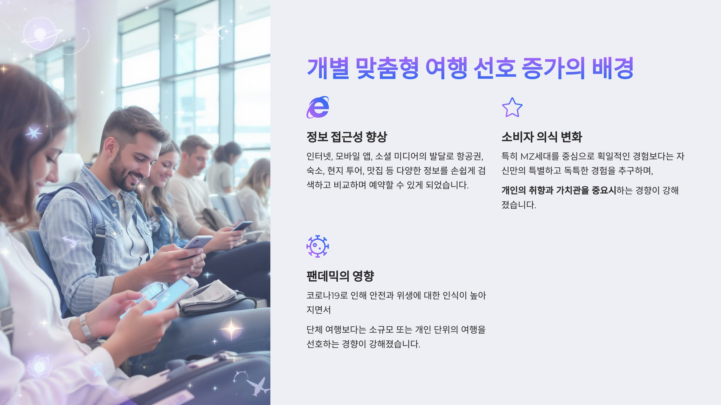 혼밥의 세대가 등장했는데 이제는 여행도 개별 맞춤형 여행의