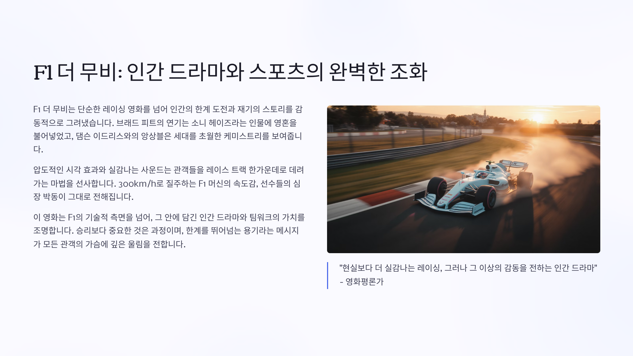 영화 F1더 뮤비의 스토리를 살짝 소개합니다